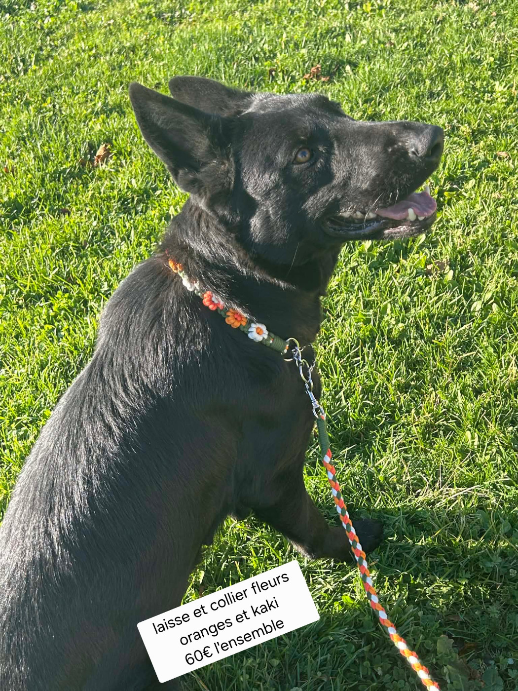 collier L 42 cms et 10 cms de chaîne 32 euros Laisse L1m40 32 euros ou l'ensenble 60 euros
