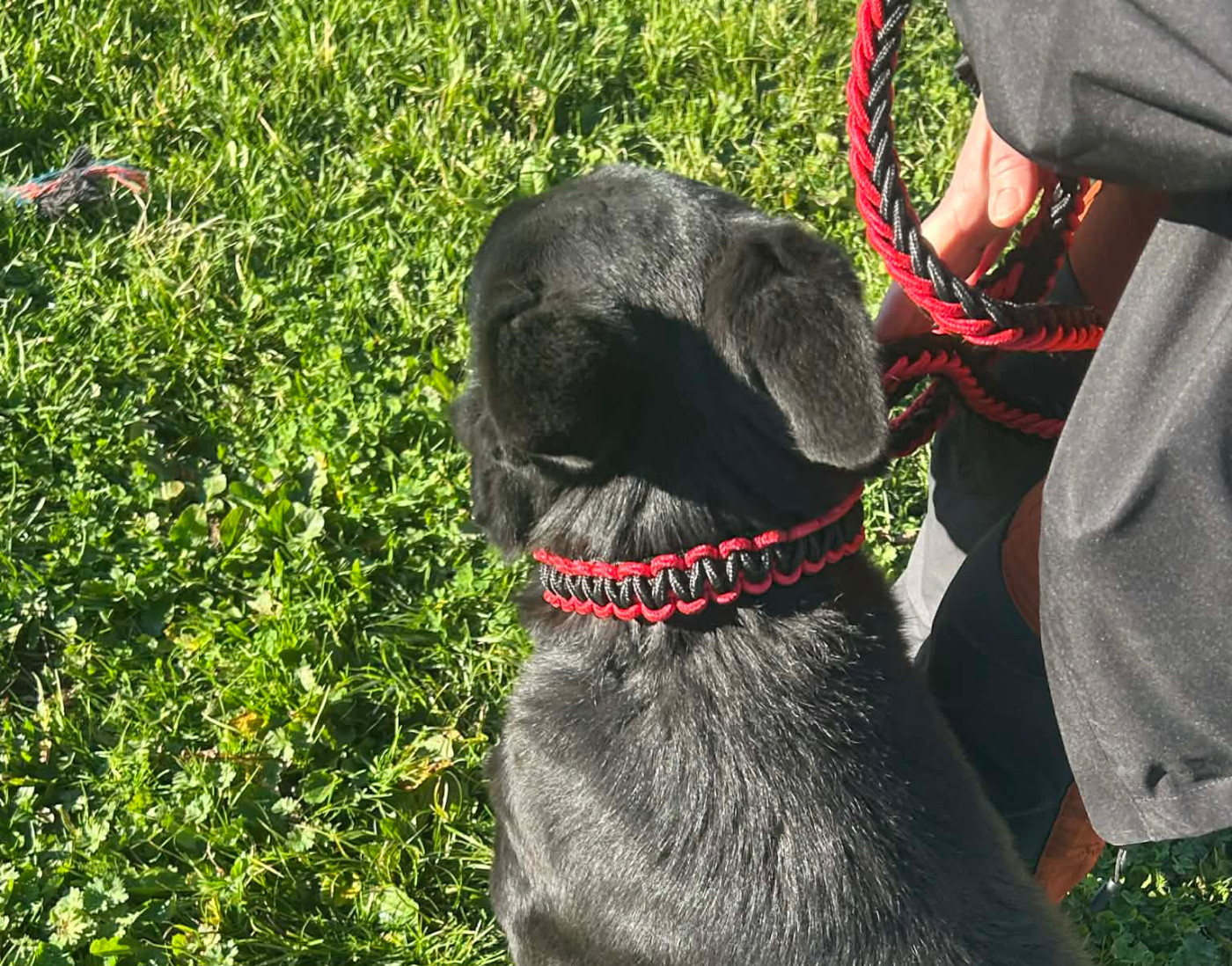 Collier 32 cms et 10 cms de chaîne 32 euros Laisse L1m25 et diam 1 cm 34 euros ou l' ensemble 64 euros